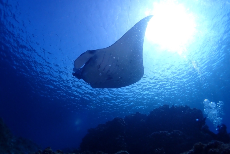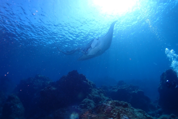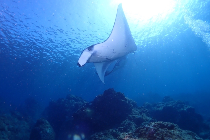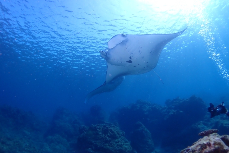 水中を優雅に泳ぐマンタにタイミングが合えば会える時期です!