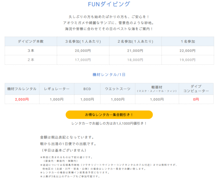*Two dives are fine, but the return time is the same because it is a one-day trip.