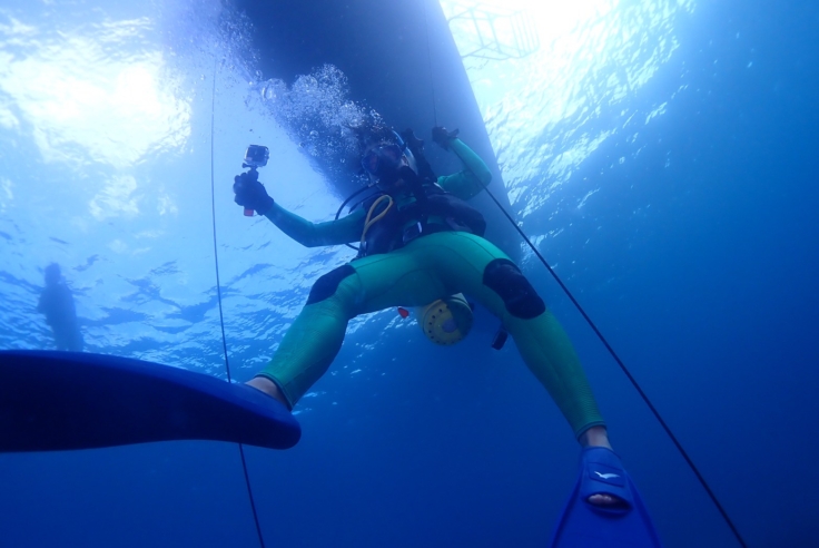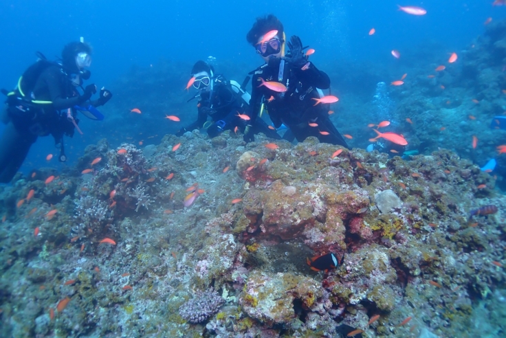 体験ダイビングの方を船に上げてから少し長めに潜ったり。