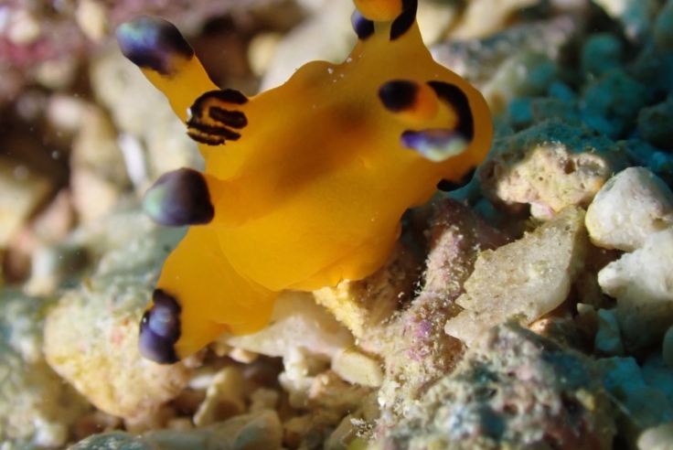 石垣島で冬の海の宝物!【ウデフリツノザヤウミウシ】、ピカチュウウミウシに会いにダイビング